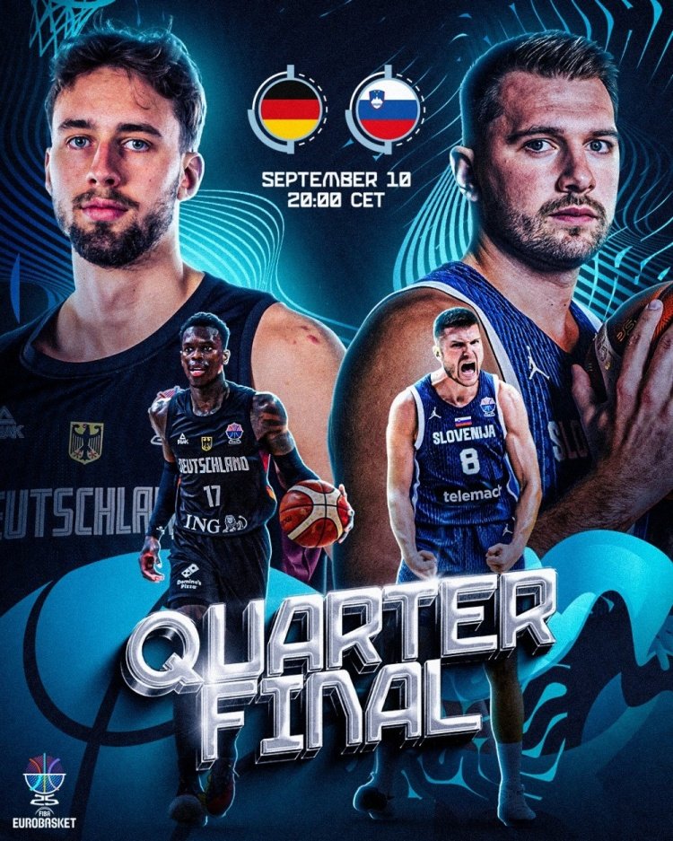 9月11日讯 男篮欧锦赛1/4决赛迎来一场强强对话,东契奇领衔的斯洛文尼亚对阵实力强劲的德国。