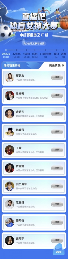 小组赛期间,您可以为所有小组的任何一位您喜爱的女神投票。
